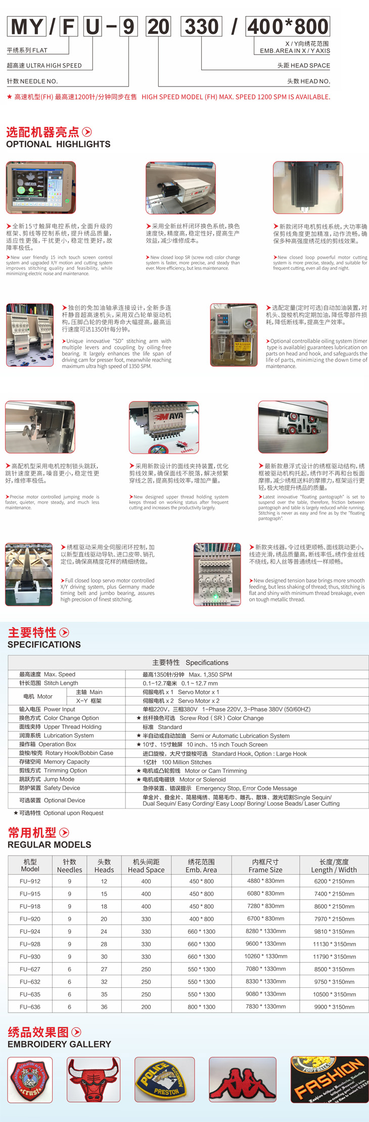 FU系列超高速平绣电脑绣花机